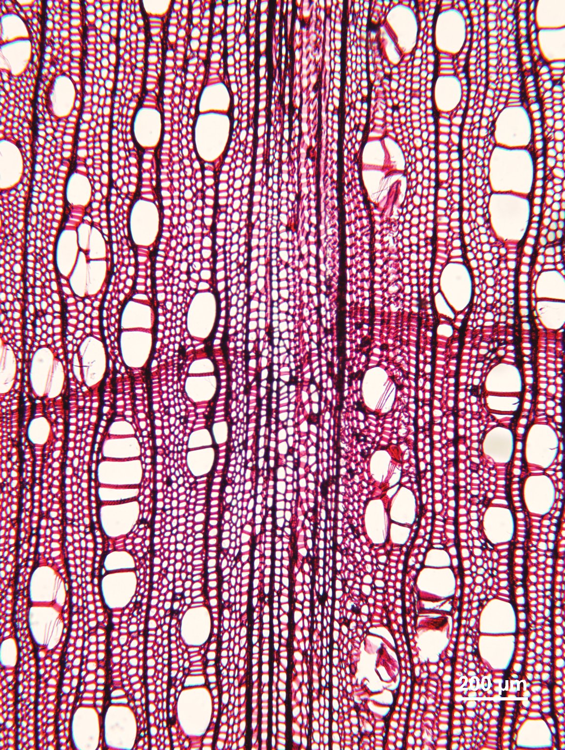 • Foto microscópica sección transversal de la madera